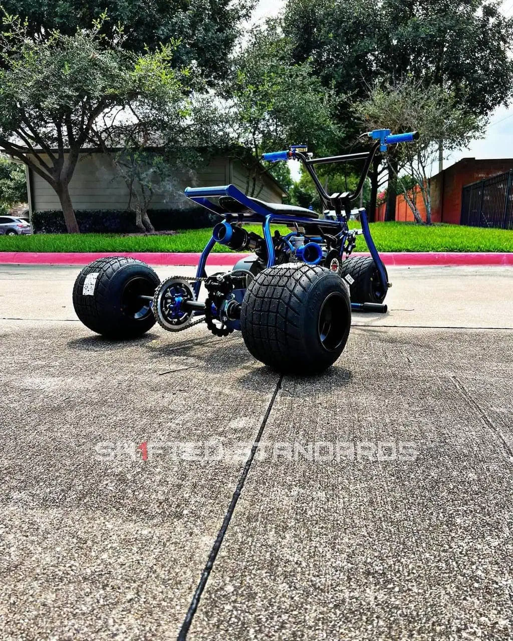 Meet Blue Ranger, the deep-blue street machine built for riders who want a crisp, modern look without losing the aggressive stance of a true drift trike. This build features bold electric-blue tubing, blacked-out hardware, and clean detailing from front to back.